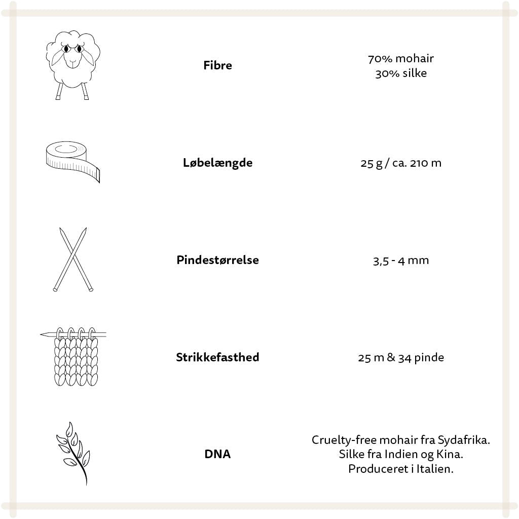 Garnets dna: Cruelty-free mohair fra Sydafrika og silke fra Indien og Kina. Garnet er produceret i Italien.