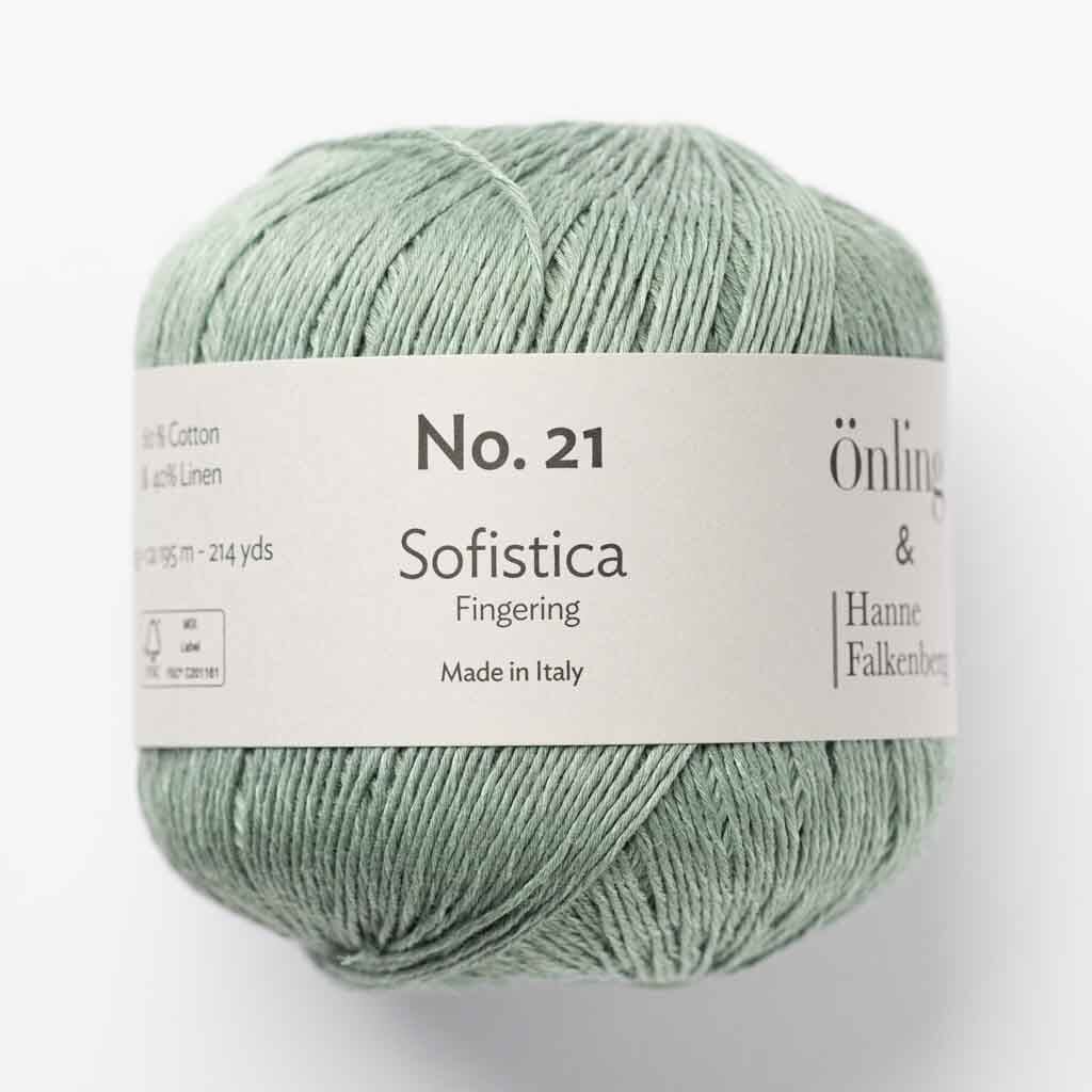 Önling No 21 kender du også under navnet ‘Sofistica’, som Hanne Falkenberg har designet en lang række af sine modeller i. Det er en elegant blanding af certificeret økologisk bomuld og hør, som er 100 % farveægte og kan maskinvaskes på skånevask (max 30 gr).