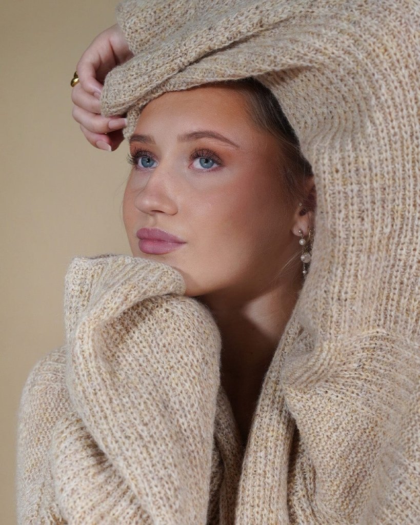 Strikkefasthed: 23 m og 46 pinde i halvpatent = 10 x 10 cm