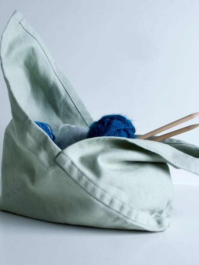 Denne mindre version af den stribede bentobag ses her i en flot olivengrøn farve. Tasken lukkes ved at binde en knude med de to flapper. Brug tasken til frokosten, som en projekttaske, en 'organiser' taske til at holde styr på dit garn og dine strikkesager i din større taske, en toilettaske, og i alle de andre situationer, hvor du ellers ville bruge en pose.