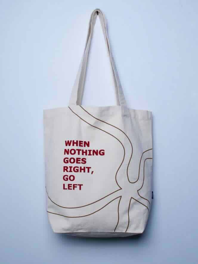 Kraftig totebag i økologisk canvas med printet 'When nothing goes right, go left'