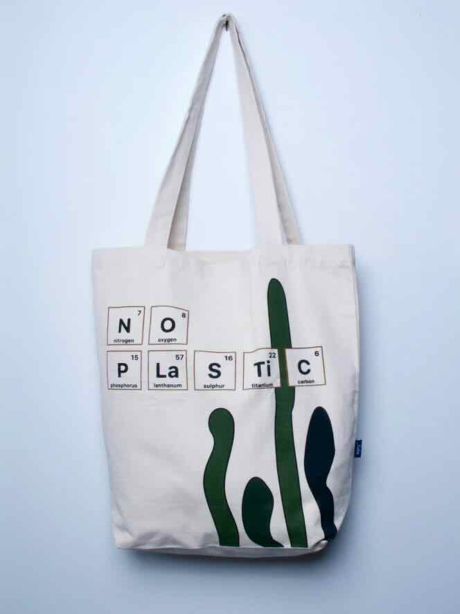 Kraftig totebag i økologisk canvas med printet 'No Plastic'