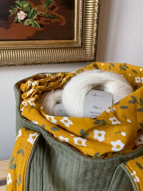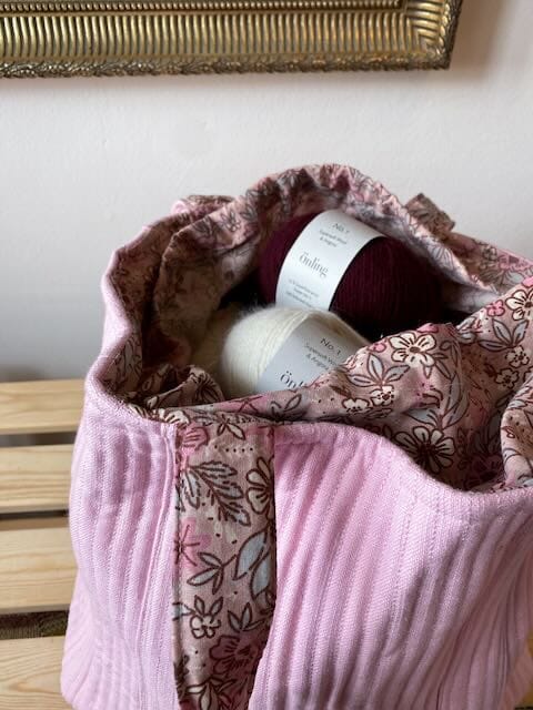 Rummelig skuldertaske, som du kan bruge som arbejdstaske, til en shopping tur - eller naturligvis til garn og mindre strikkeprojekter, når du skal på tur.