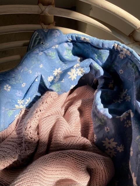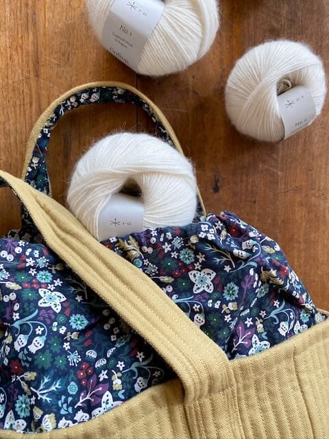 Her får du en luksuriøs taske syet af en kraftig vævet bomuld, der er blevet quiltet, og foret med liberty stof. Alle materialer er GOTS certificerede økologiske - også vattet brugt til quiltningen.