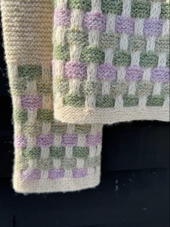 Strikkefasthed: 28 m og 58 p strukturmønster i vævestrik på p nr. 3 10 x 10 cm