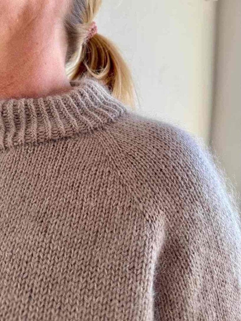 Frederikke sweater er en enkel og tidløs højhalset raglansweater, som er nem at strikke – også for let-øvede. Den har et klassisk snit med ca. 5 cm i bevægelsesrum, en normal ærmegabshøjde og lange ærmer. Længden er en smule kort, men kan nemt justeres, så den passer til din stil. En enkel, alsidig sweater, som du vil elske at have i garderoben!