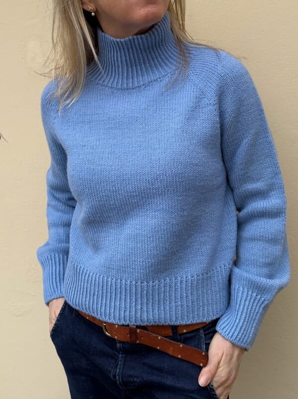 Frederikke sweater er en enkel og tidløs, højhalset raglansweater, som er let at strikke – også for let øvede. Den har et klassisk snit med ca. 5 cm i bevægelsesrum, en normal ærmegabshøjde og lange ærmer. Længden er en smule kort, men kan nemt justeres, så den passer til din stil. En enkel, alsidig sweater, som du vil elske at have i garderoben!