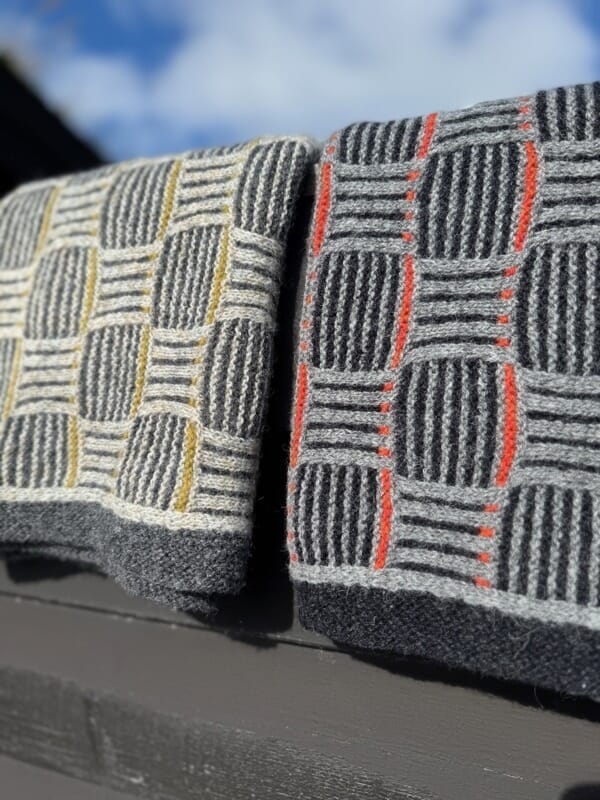 Saga kan bruges som vest eller bluse med et lille ærme strikket. Det smukke mønster fremkommer med vævestrik, dvs. du strikker kun med én farve ad gangen.