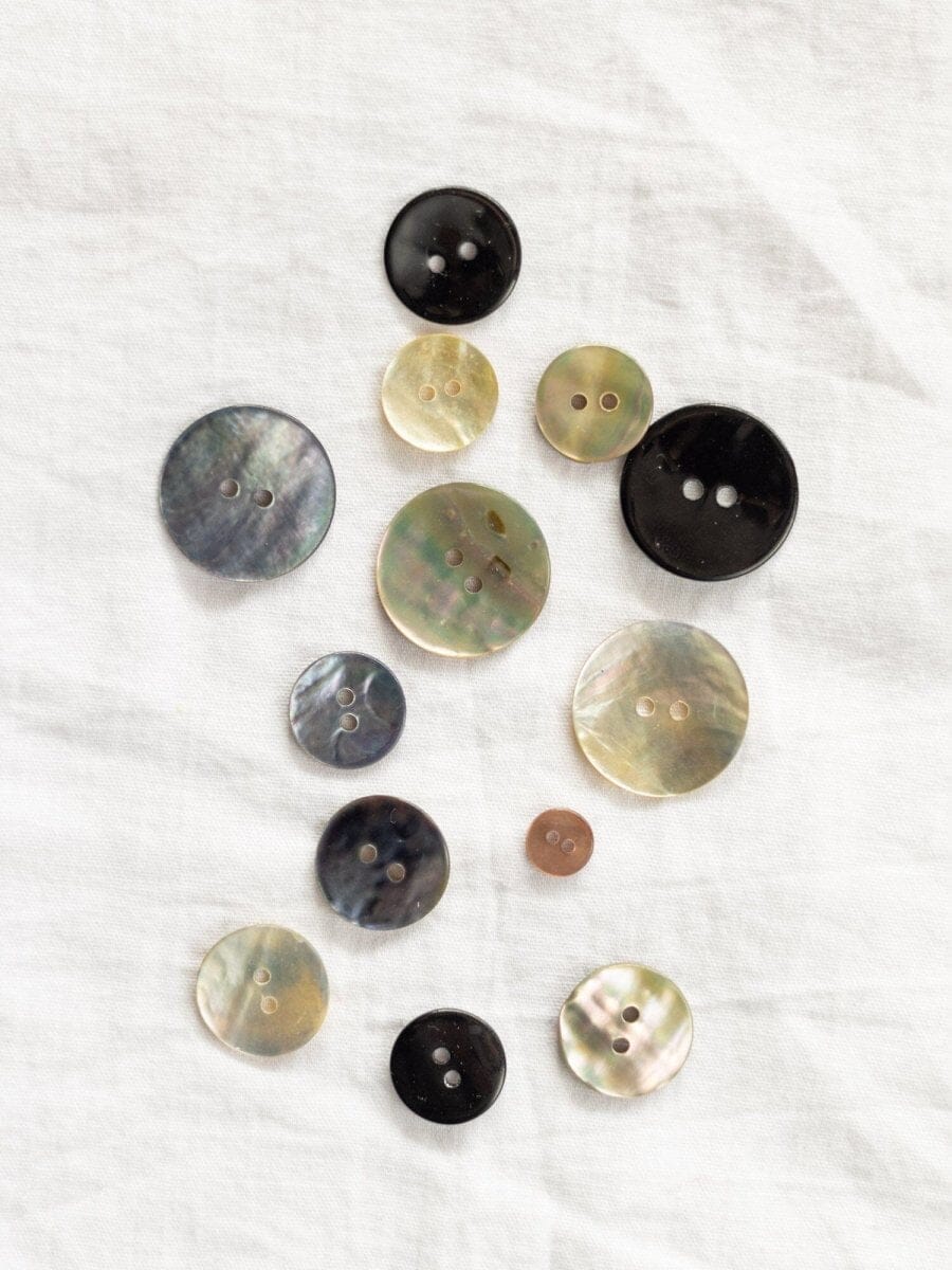 Hos Önling finder du perlemorsknapper i flere forskellige størrelser: 9 mm, 15 mm, 23 mm.