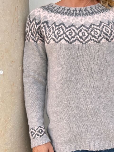 Björk Sweater, er vores meget populære genfortolkning af en islandsk sweater. Den var oprindelig med i vores strikkebog Yndlingsstrik 1. Denne sweater er super feminin og sidder til kroppen, med et smukt islandsk inspireret mønster på bærestykket og ærmerne. Perfekt til hyggelige vinter aftener, eller under frakken på en gåtur.