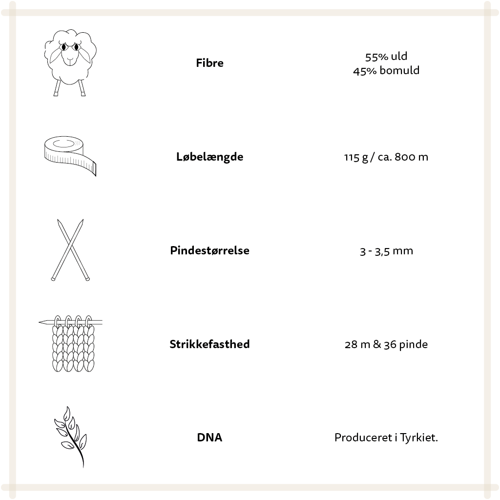 Komposition: 55 % uld og 45 % bomuld